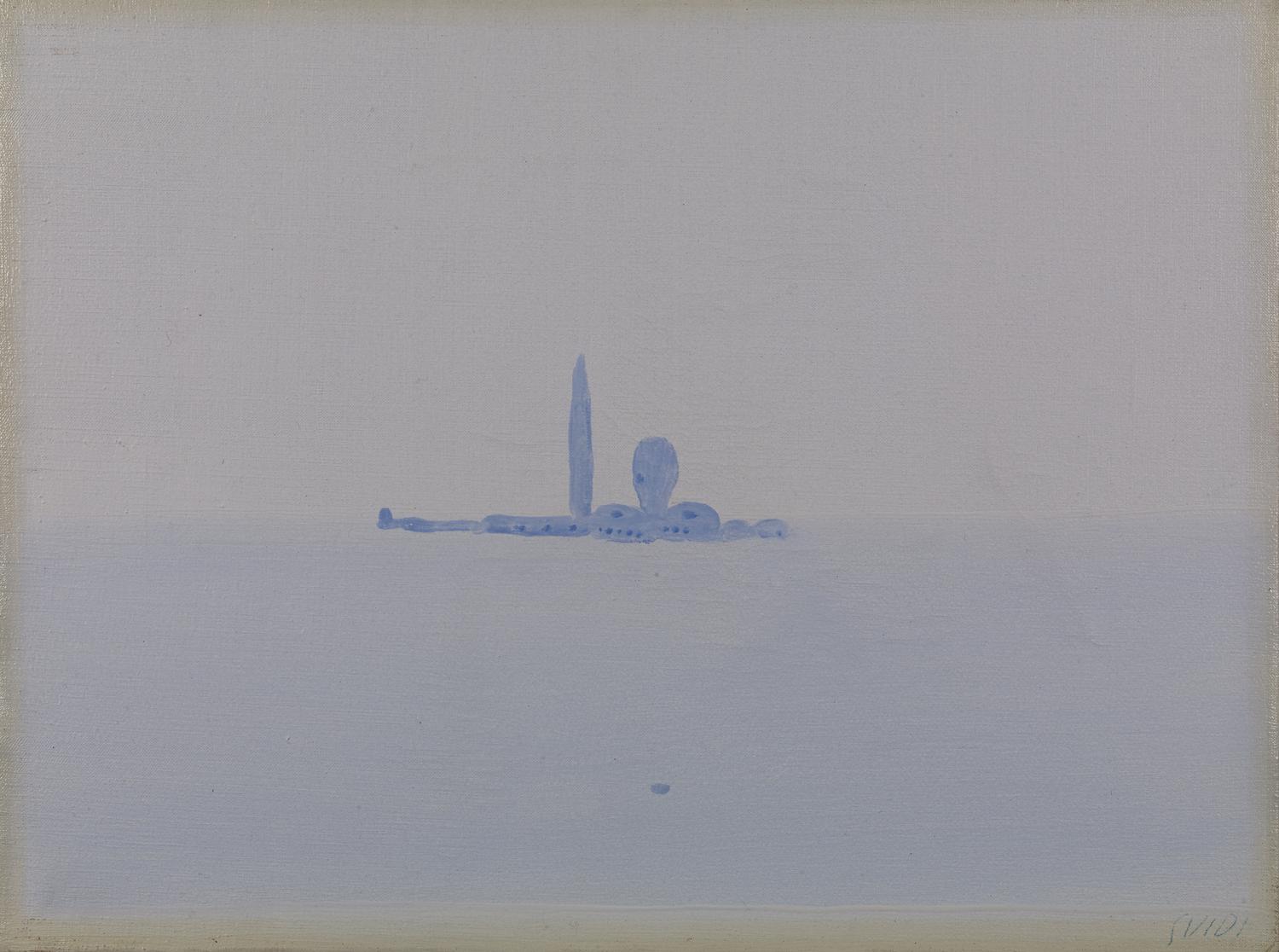 Virgilio Guidi ISOLA DI SAN GIORGIO olio su tela, cm 25x38 firma sul retro:...