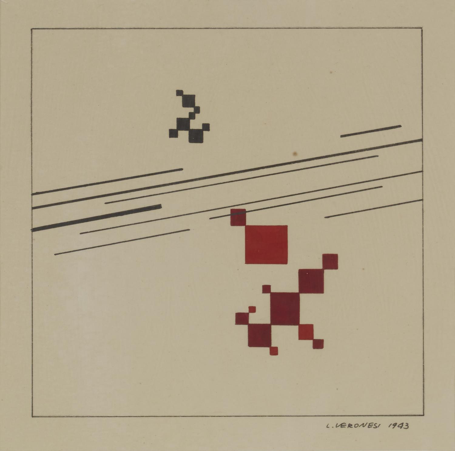Luigi Veronesi SENZA TITOLO china su carta, cm 17x17 firma e data eseguito...