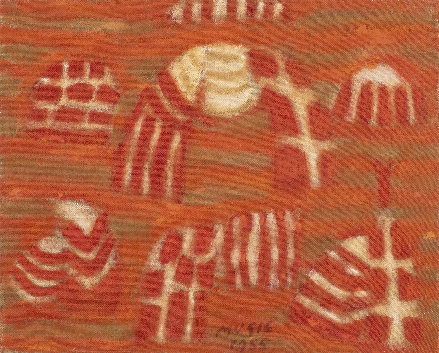 Zoran Music PAISANNES DES ILES olio su tela, cm 34x41 firma e data sul retro:...