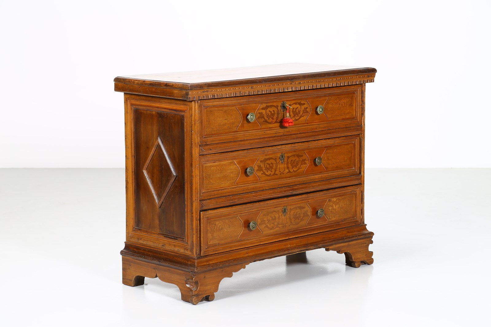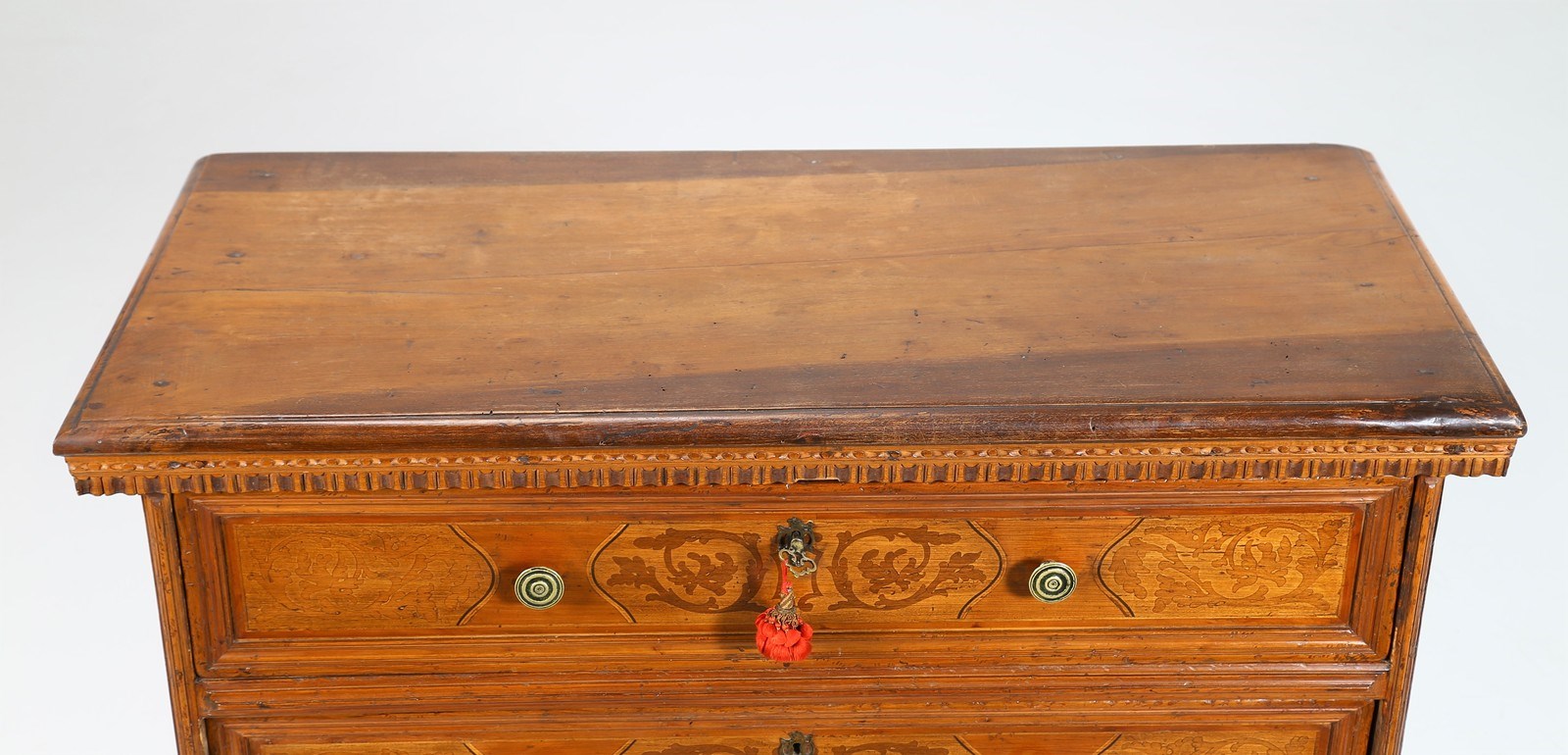Lot 50 | MANIFATTURA LOMBARDA DEL XVII SECOLO Cassettone a tre cassetti in legno di noce.