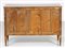 MANIFATTURA LOMBARDA DEL XVIII SECOLO Cassettone a tre cassetti in noce intarsiato in legni di essenze pregiate, fronte e fianchi dritti, decori figurativi entro riserve circolari sul fronte e il piano, gambe troncopiramidali. . Cm 121,00 x 86,00 x 87,00.