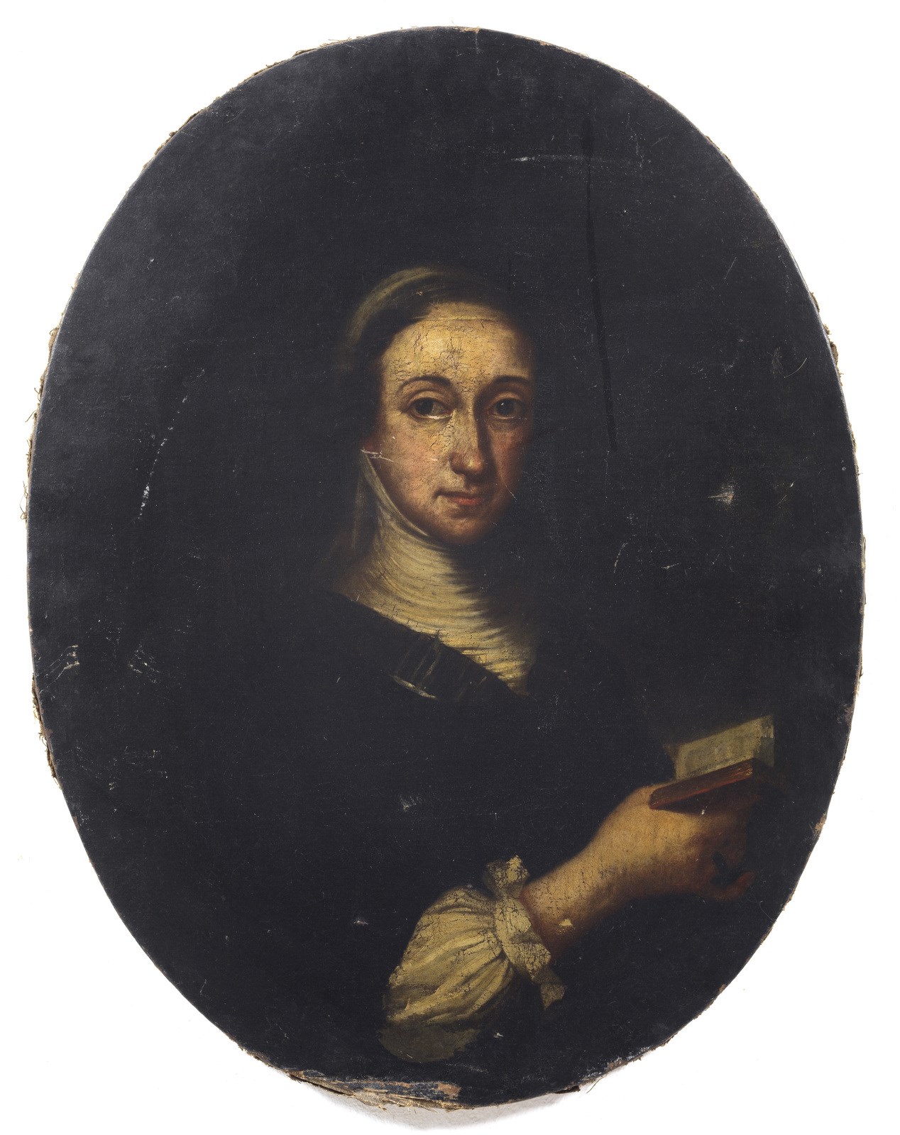 ARTISTA VENETO DEL XVIII SECOLO Ritratto di donna con libro. . Olio su tela ovale. Cm 62,00 x 81,00.