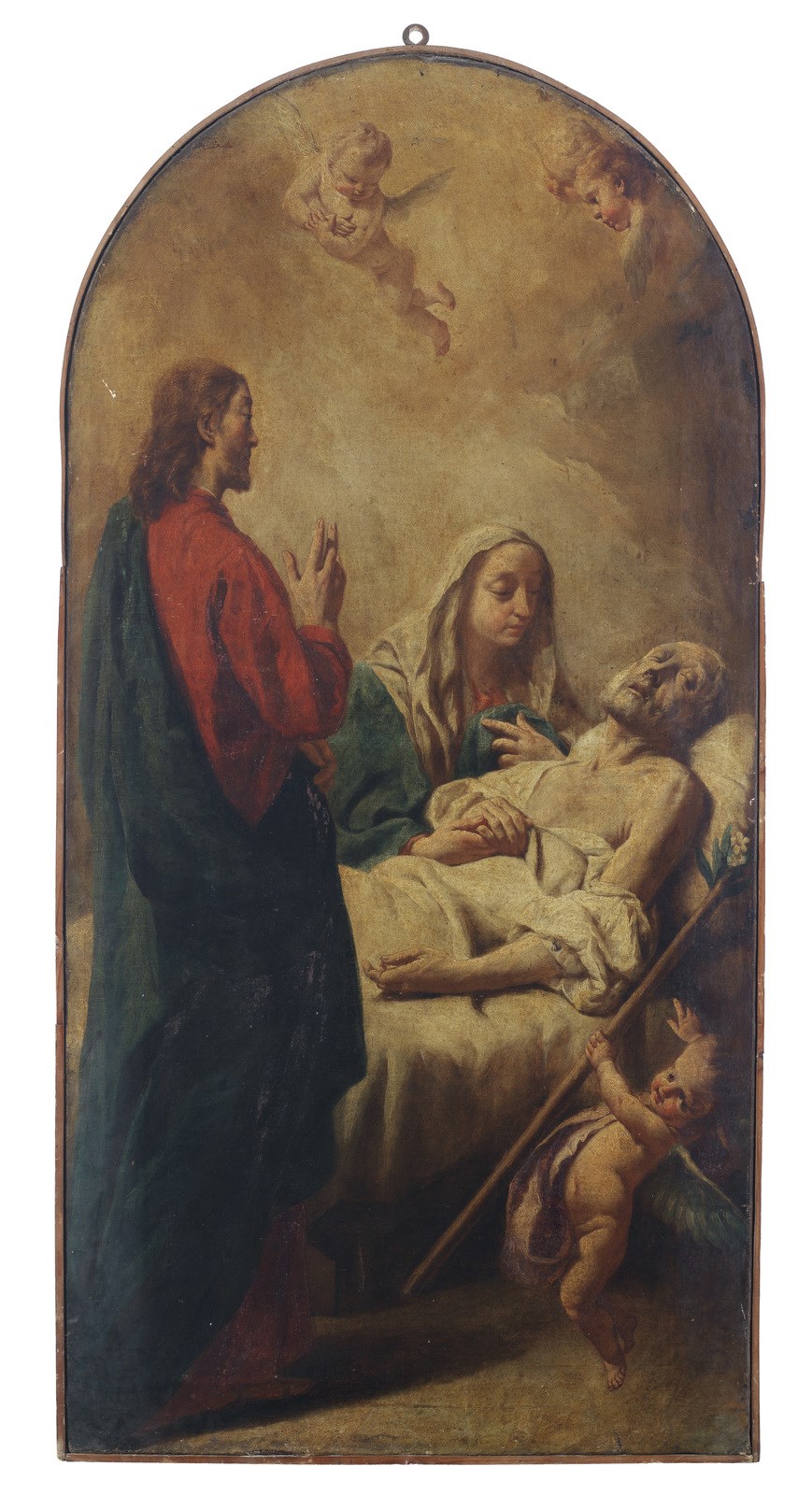 ARTISTA VENETO DEL XVIII SECOLO Transito di San Giuseppe. . Olio su tela . Cm 71,00 x 144,00. . Cornice presente