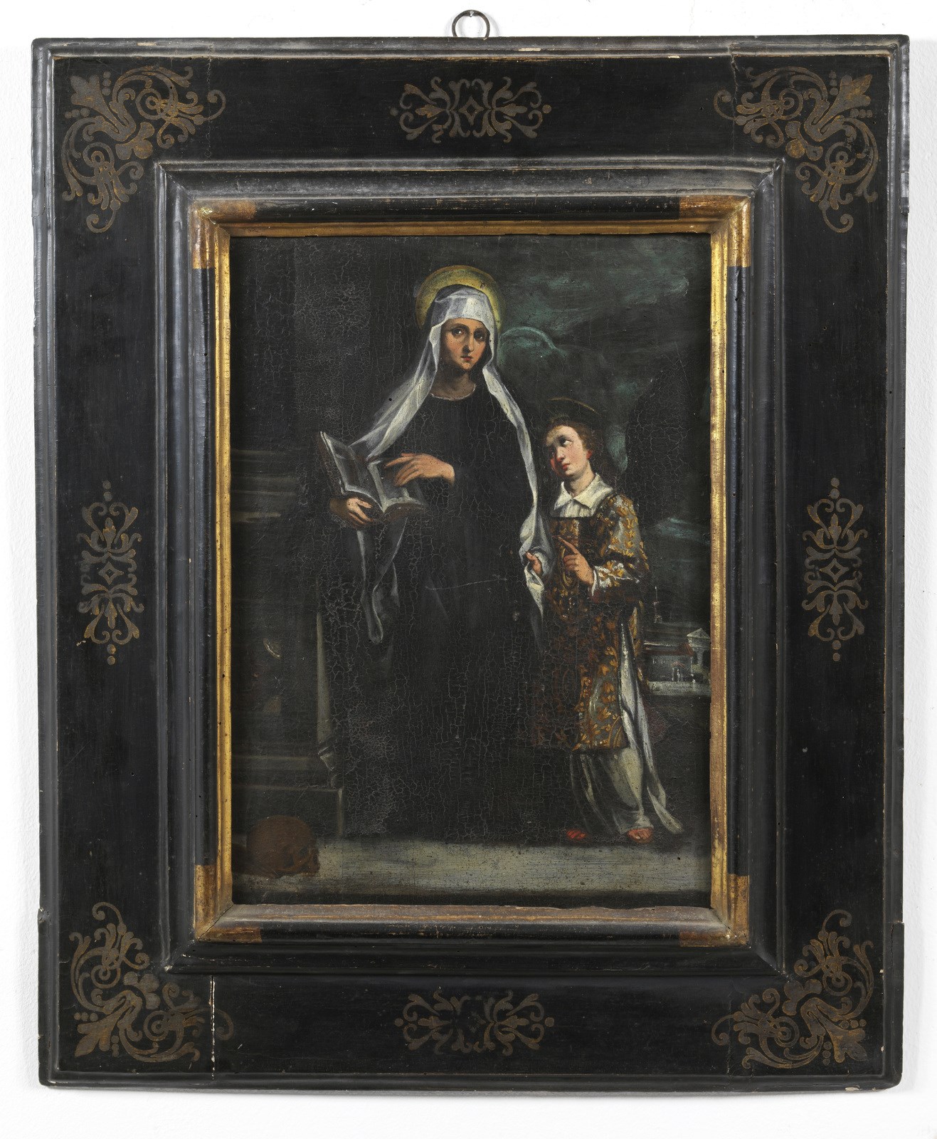ARTISTA DEL XVI SECOLO Santa Francesca Romana. Olio su tavola. Cm 34,20 x 48,50. Cornice ebanizzata e antica. Cornice presente
