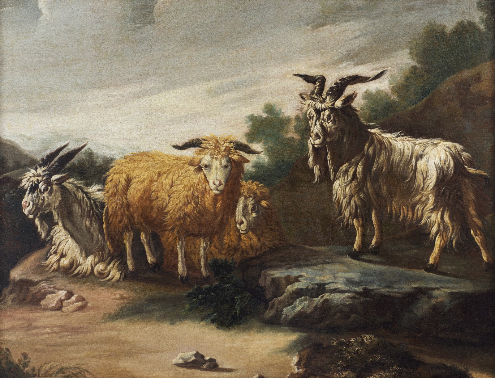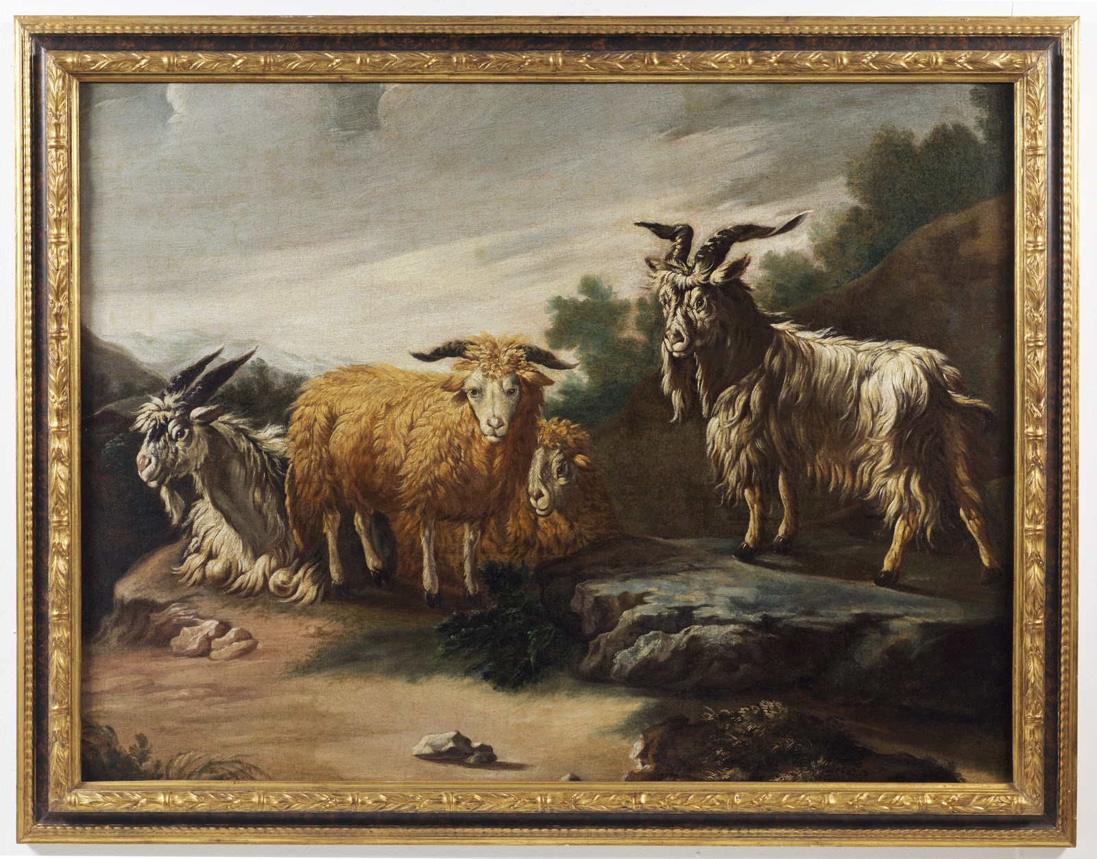 PHILIPP PETER ROOS DETTO ROSA DA TIVOLI (1657 - 1706) Paesaggio con armenti. . Olio su tela . Cm 127,00 x 96,00. . Cornice presente