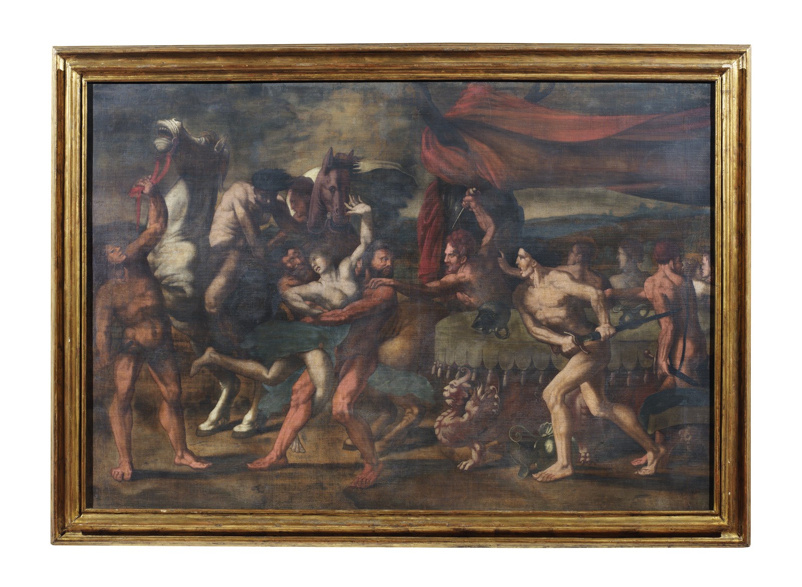 ARTISTA DEL XVI SECOLO Scena mitologica. Tempera su tela. Cm 158,00 x 108,00.