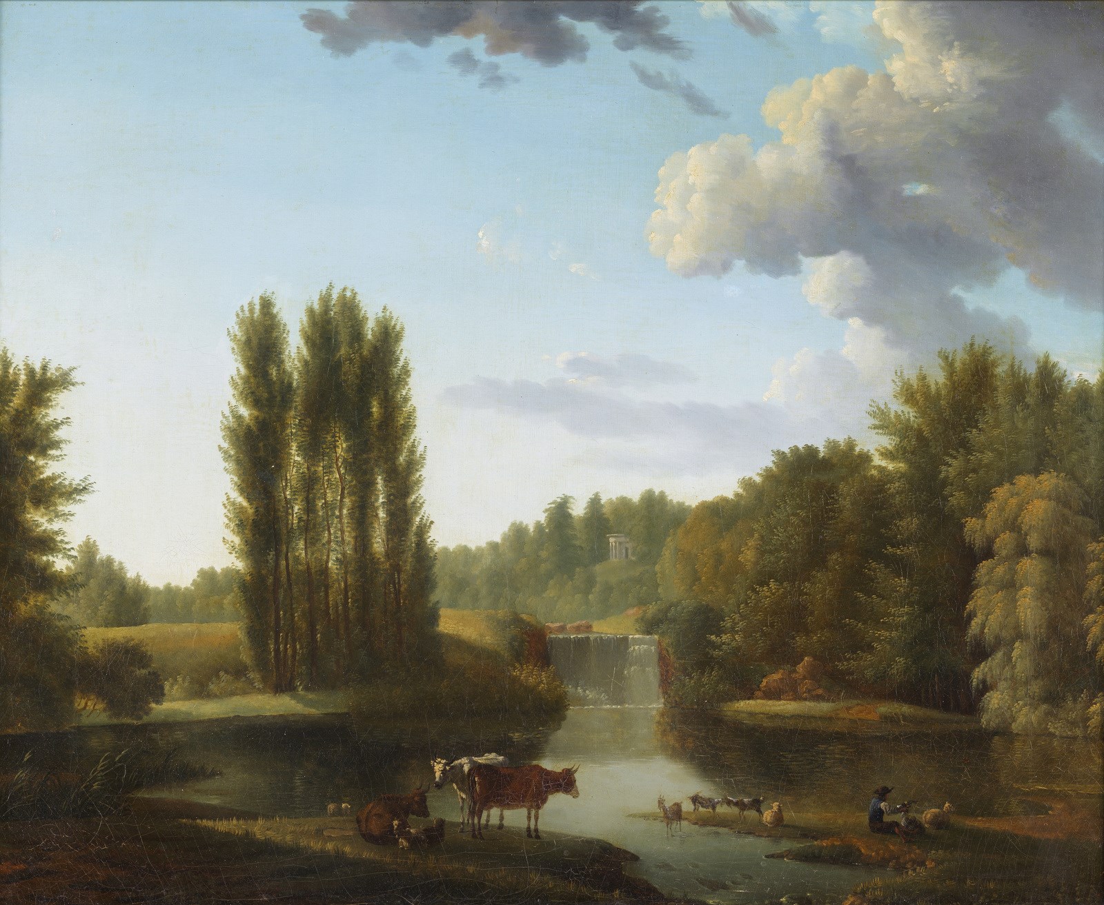 ALEXANDRE HYACINTHE DUNOUY Paesaggio con armenti e fiume. .