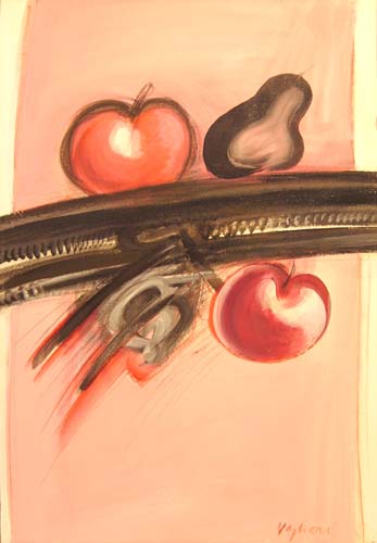 Vaglieri Tino Composizione Olio su carta cm 34 x 49,4 firmata in basso a destra,etichetta Asta Sotheby's, Prov.COLLEZIONE PRIVATA