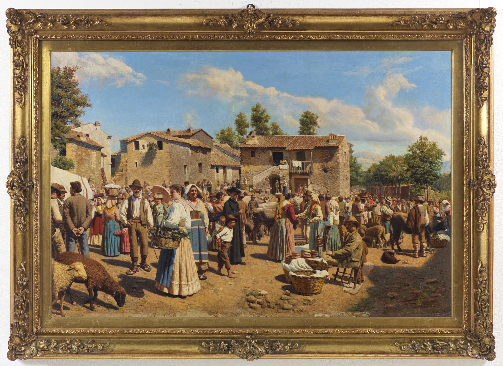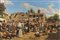 BARUCCI PIETRO (1845 - 1917) Attribuito a. Mercato. Olio su tela . Cm 110,00 x 74,50. . Cornice presente