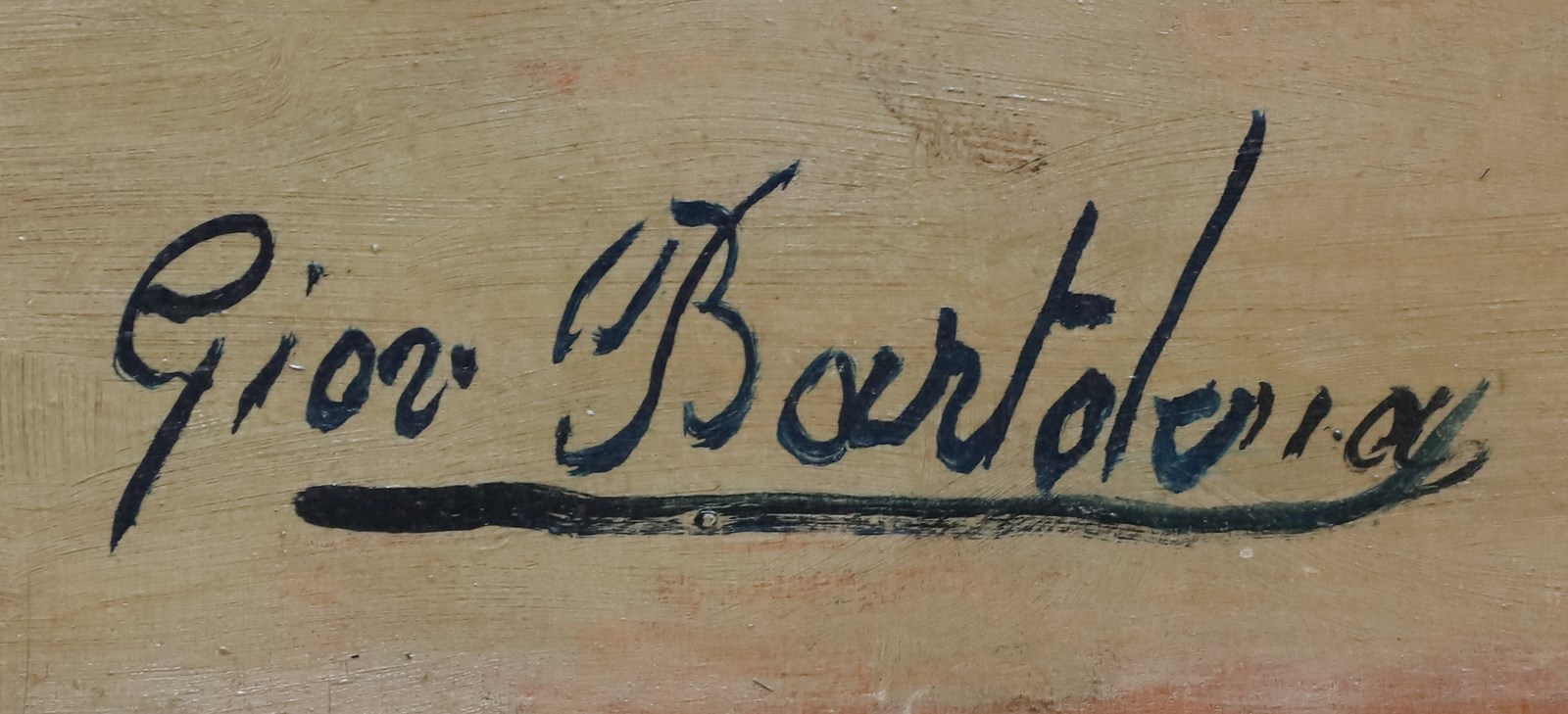 BARTOLENA GIOVANNI (1866 - 1942) Cavallo da tiro sul mare. Olio su tavola. Cm 63,00 x 39,00. Firmato in basso a destra.Pubblicato in Jolanda Pelegatti (a cura di), Giovanni Bartolena, Centro editoriale arte e turismo, Firenze 1970, fig. 17.