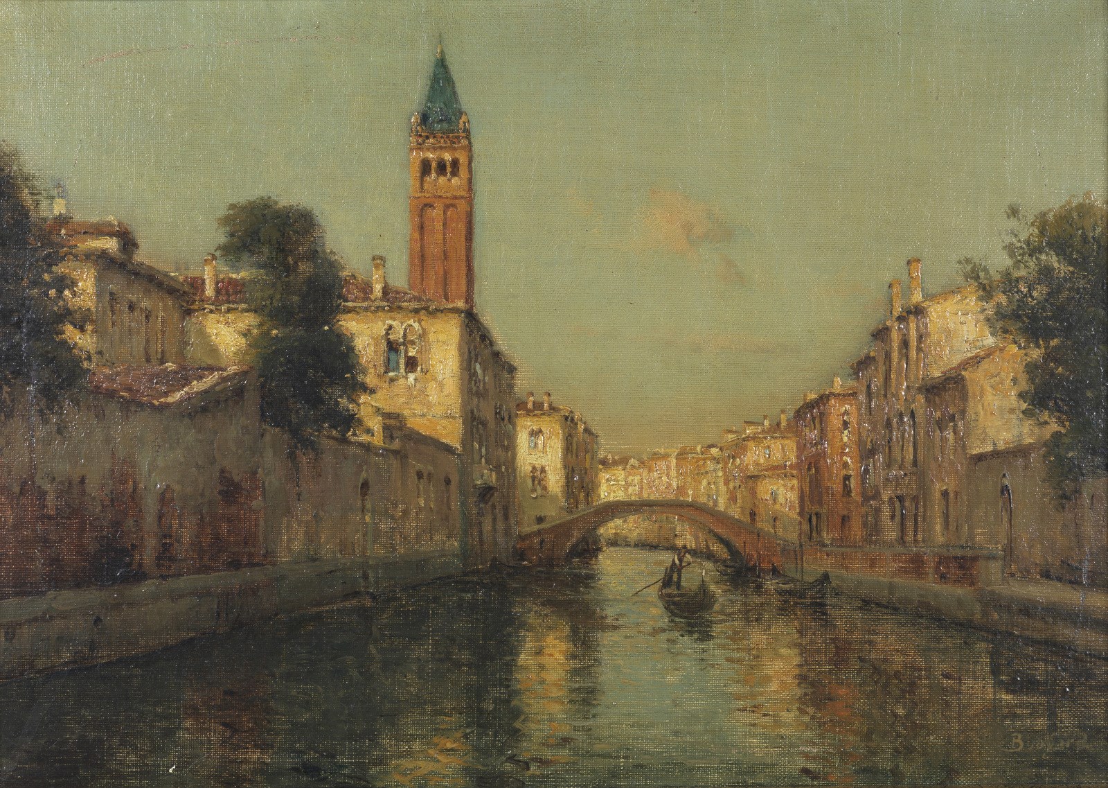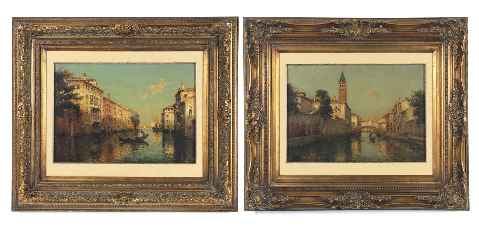 BOUVARD ANTOINE (1870 - 1956) Coppia di vedute di Venezia. . Olio su tela . Cm 46,00 x 33,00. Firmato in basso a destra. . Cornice presente