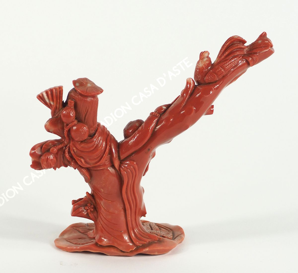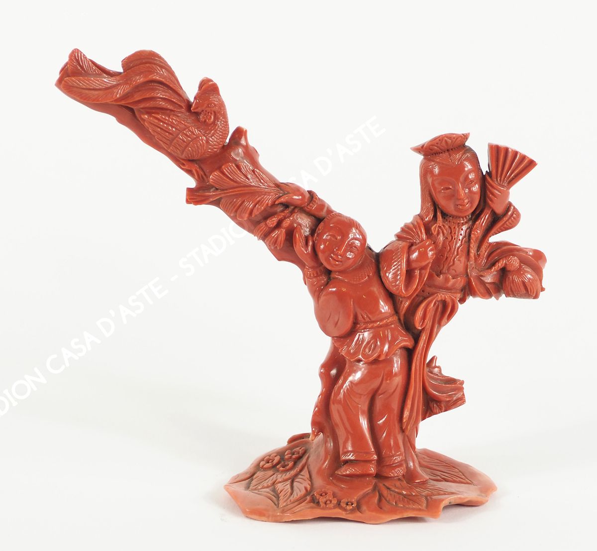 Lot 3 | Grande scultura in corallo lavorato raffigurante personaggi orientali. H. cm....