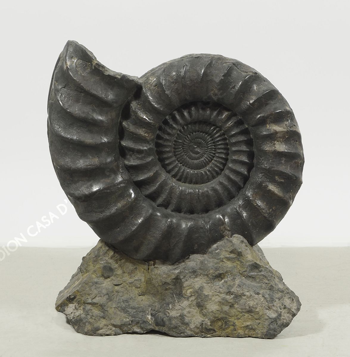 Conchiglia di ammonite scura. H. cm. 44.