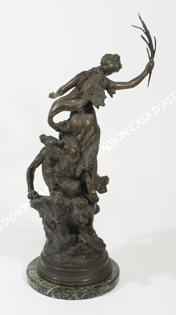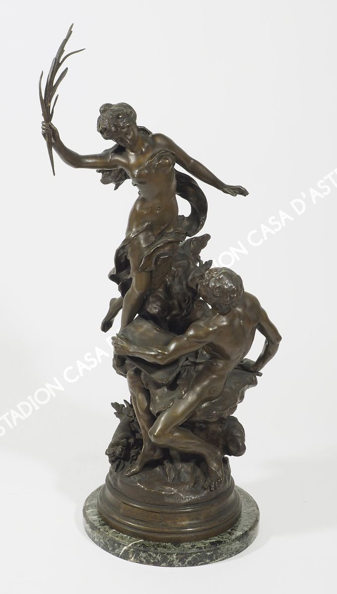 Mathurin Moreau 1822-1912 "Angeli" h. cm. 88 - scultura in bronzo a patina...