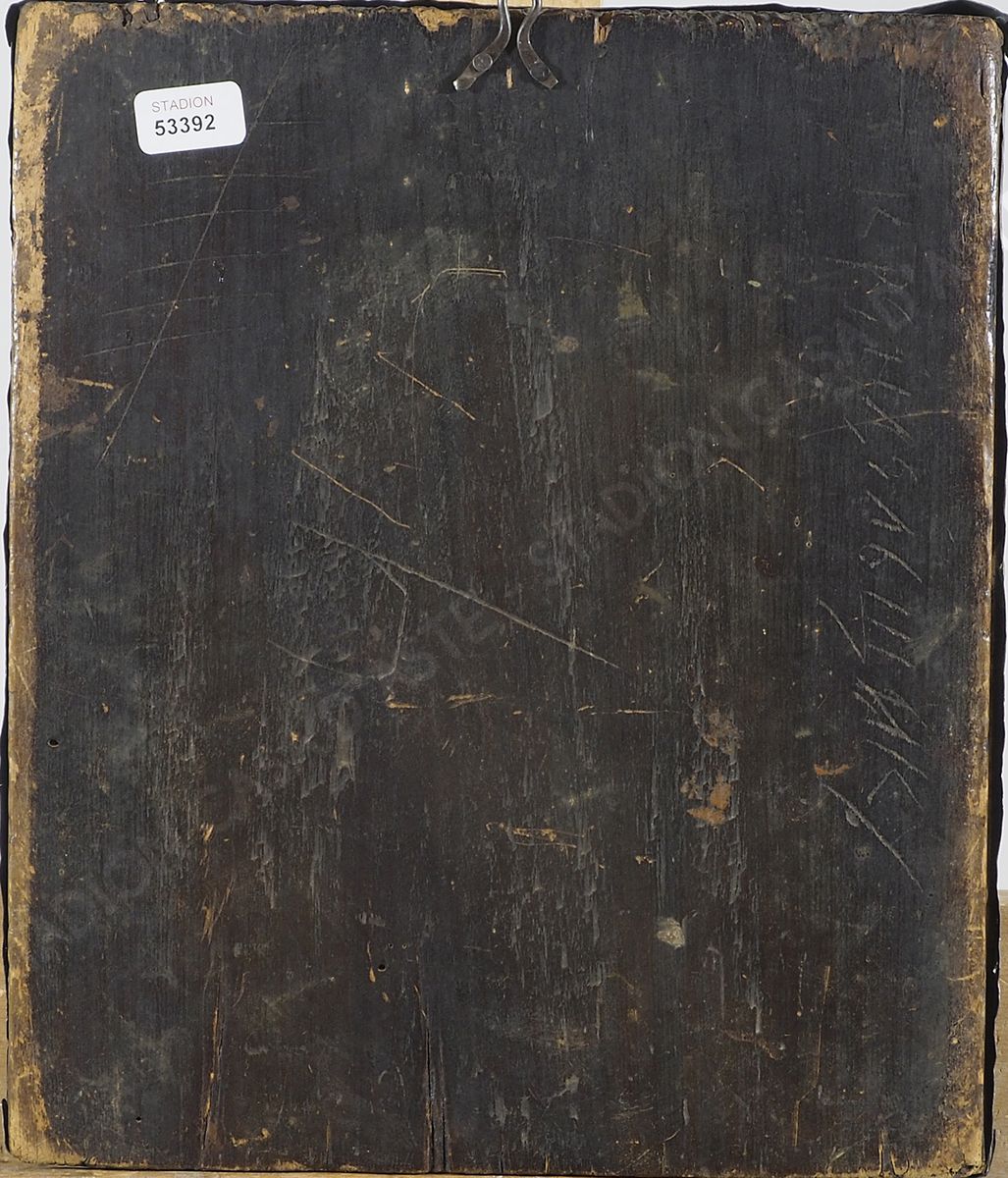 Icona dipinta su tavola raffigurante Santo con libro, riza in argento....