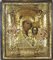 Grande icona dipinta su tavola raffigurante Madonna con bambino, riza in...