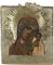 Icona dipinta su tavola raffigurante Madonna con bambino, riza in ottone...