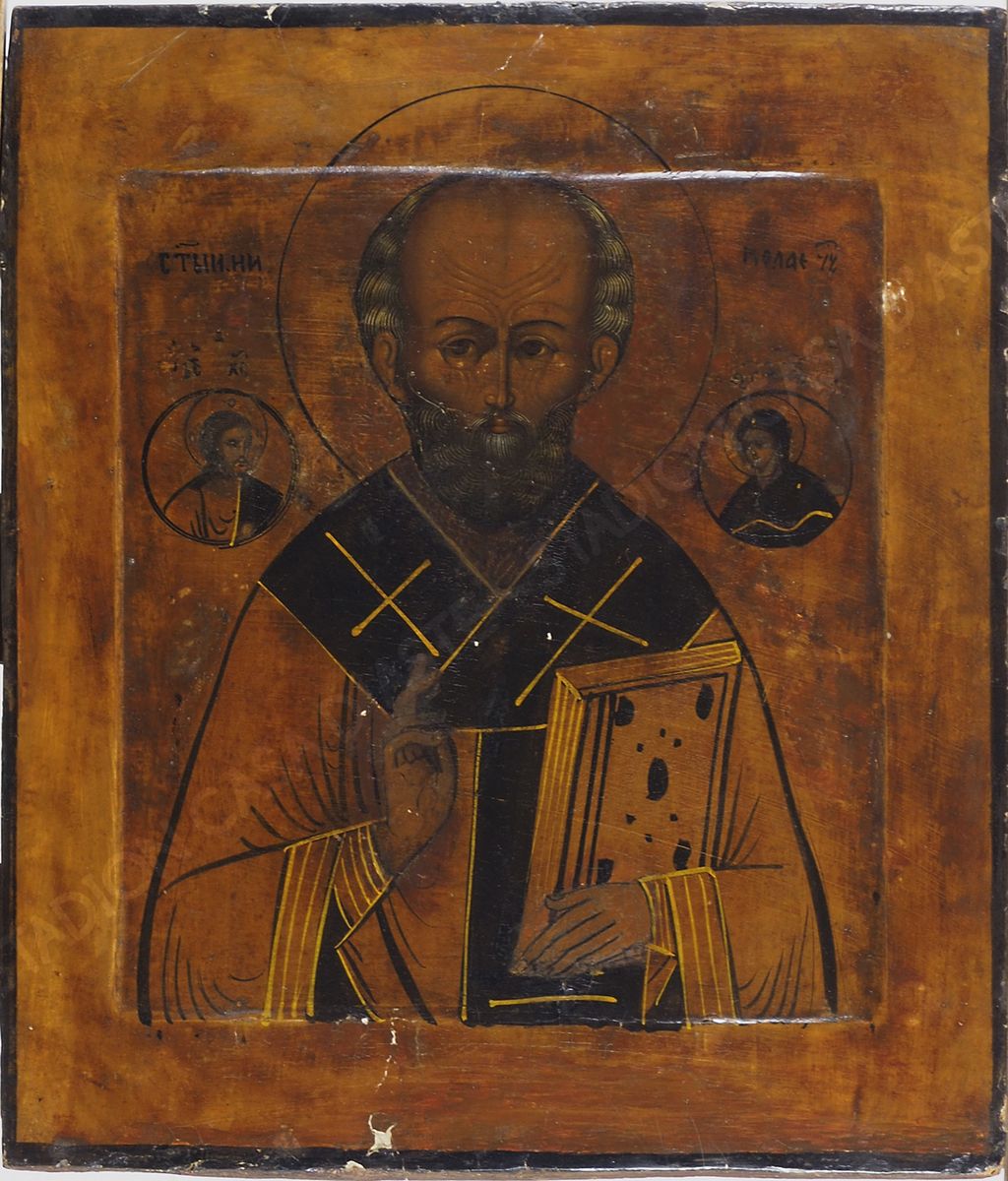 Icona dipinta su tavola raffigurante Santo con libro. Fine XIX secolo. cm....