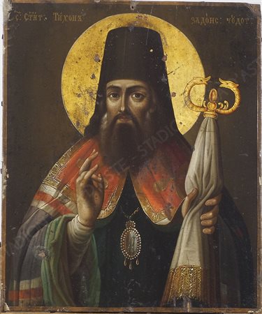 Icona dipinta su tavola raffigurante Santo con cappello. Russia centrale, XIX...