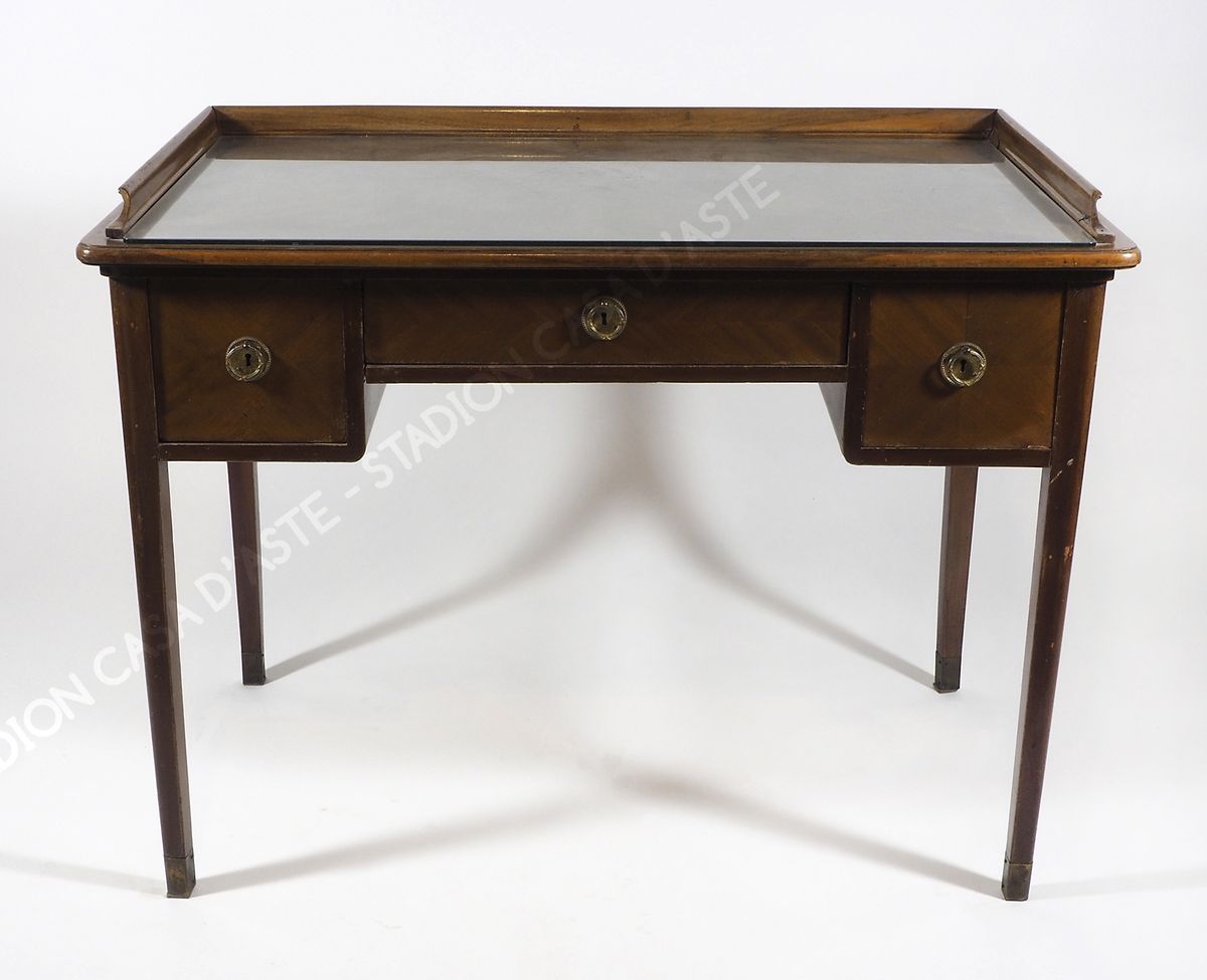 Scrittoio in legno a 3 cassetti. cm. 84xx110x68.