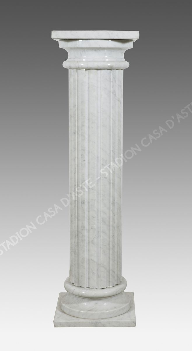 Colonna in marmo bianco lavorata a scanalature verticali. H. cm. 105.