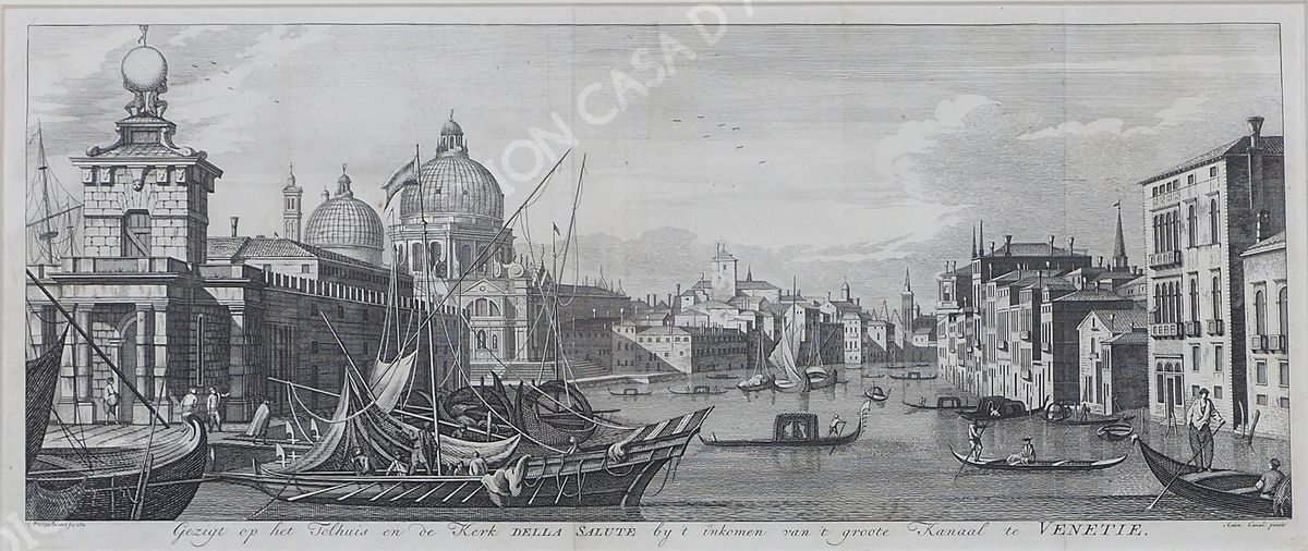 Lotto di 2 stampe raffiguranti paesaggio e veduta di Venezia, incorniciate....