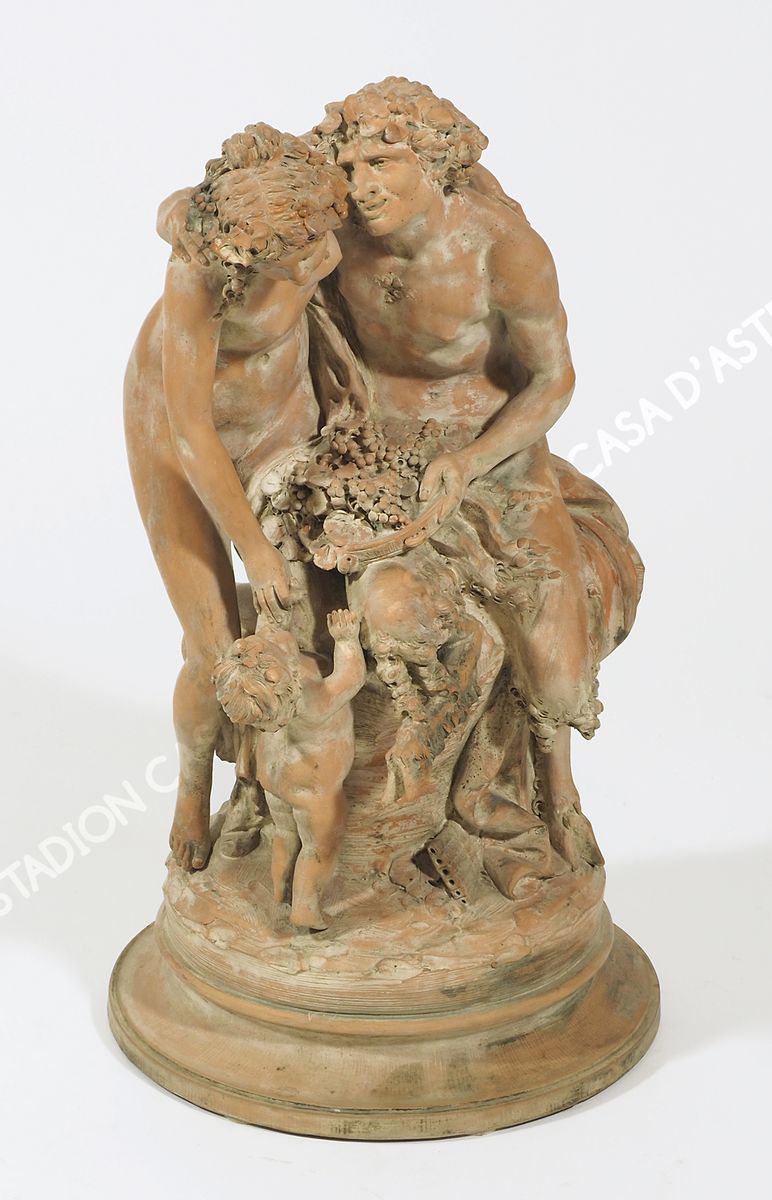 Clodion "Ninfa, Fauno e putto" h. cm. 53 - scultura in terracotta
