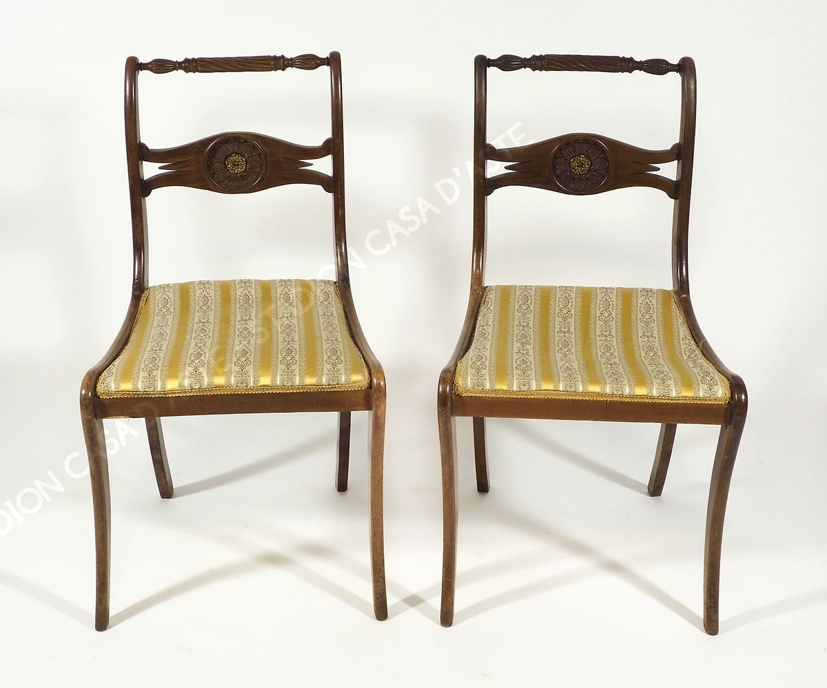 Lotto di 4 sedie in legno con schienale scolpito. XIX secolo.