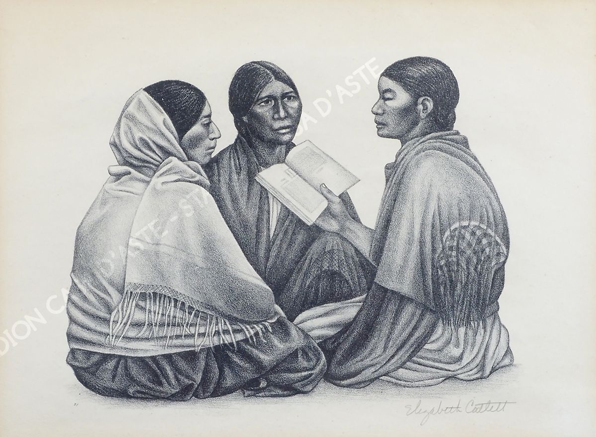 Elizabeth Catlett 1915-2012 "Sedute con il libro" cm. 29x39 - matita su carta...