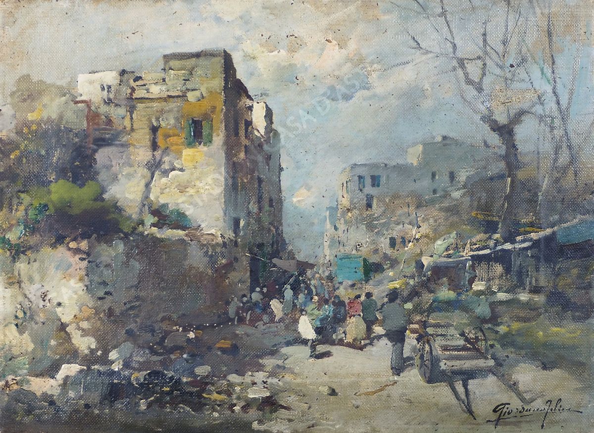 Giovanni Gioardani 1884-1969 "Folla in strada" cm. 30x40 - olio su tela...
