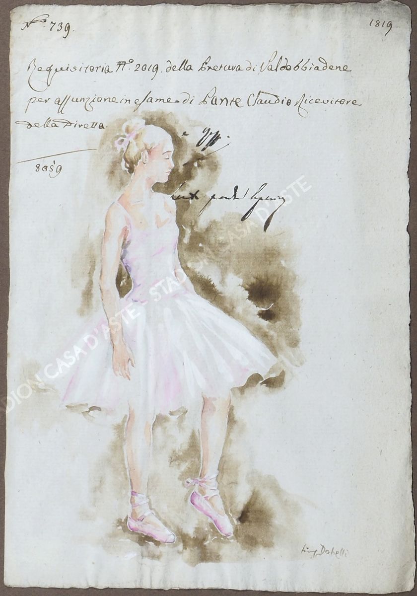 Maestro del XIX secolo "La ballerina" cm. 33x23 - acquerello e gouache su...