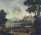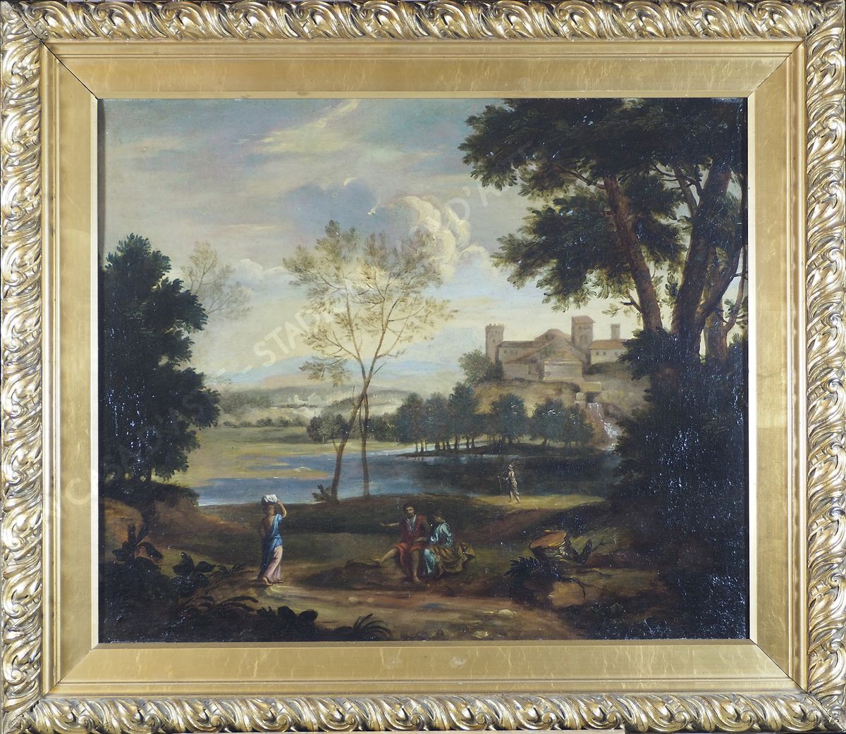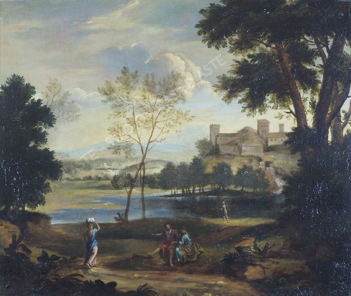 Maestro operante a Roma nel XVIII secolo "Paesaggio con castello" cm. 57x68 -...