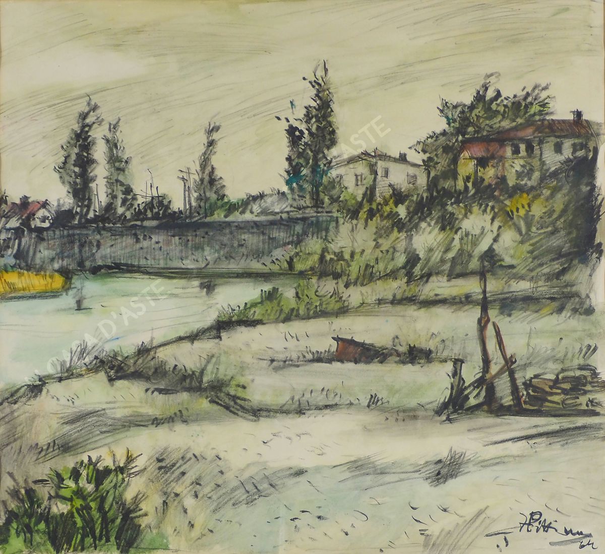 Fred Pittino Dogna (UD) 1906-1991 "Campagna" cm. 57x61 - tecnica mista...