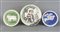 Lotto di 3 piatti in ceramica policroma, due firmati. Diam. max cm. 31. (uno restauro).