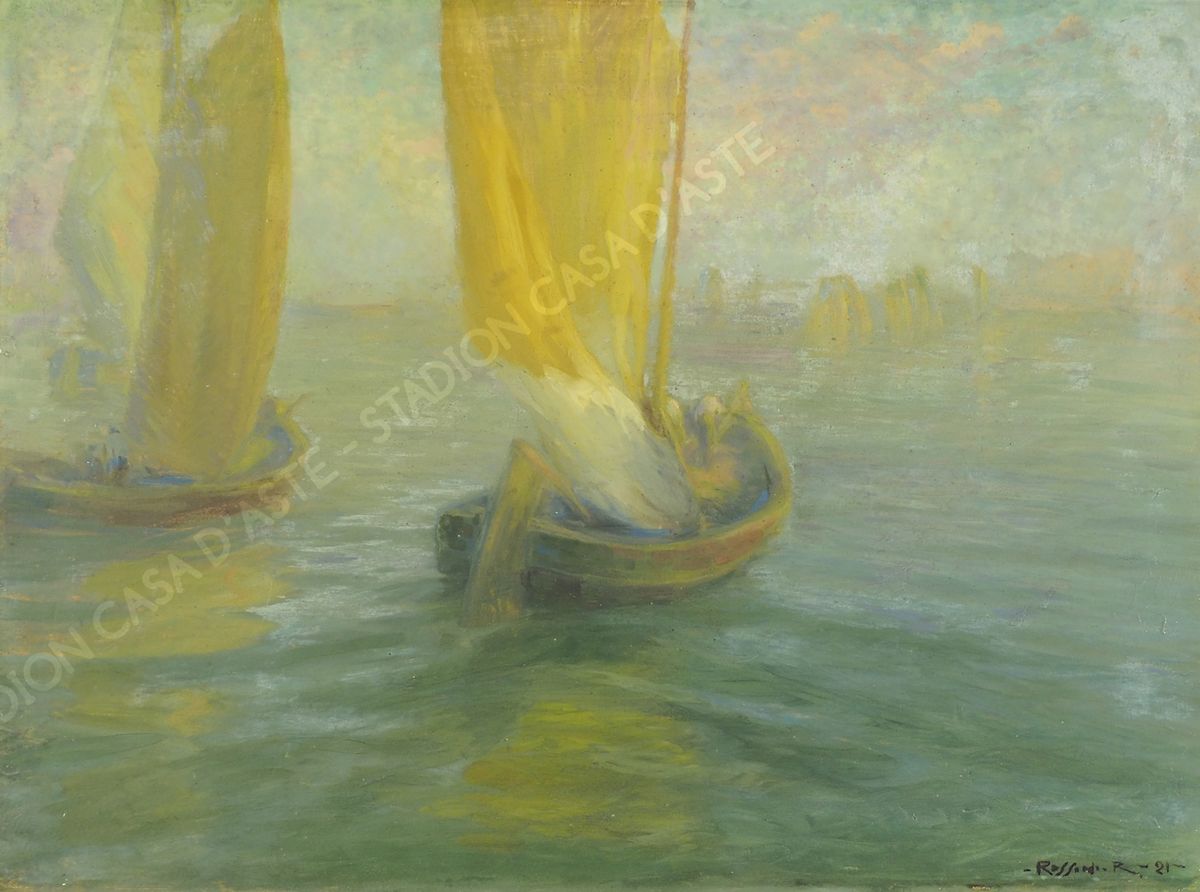 Romano Rossini Trieste 1886-1951 "Pescatori al largo" cm. 48x64 - olio su...