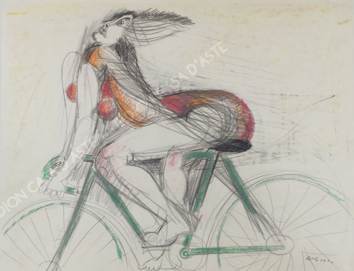 Lot 405 | Federico Righi Trieste 1908-1987 "Ciclista sexy" cm. 44x57 - tecnica mista...