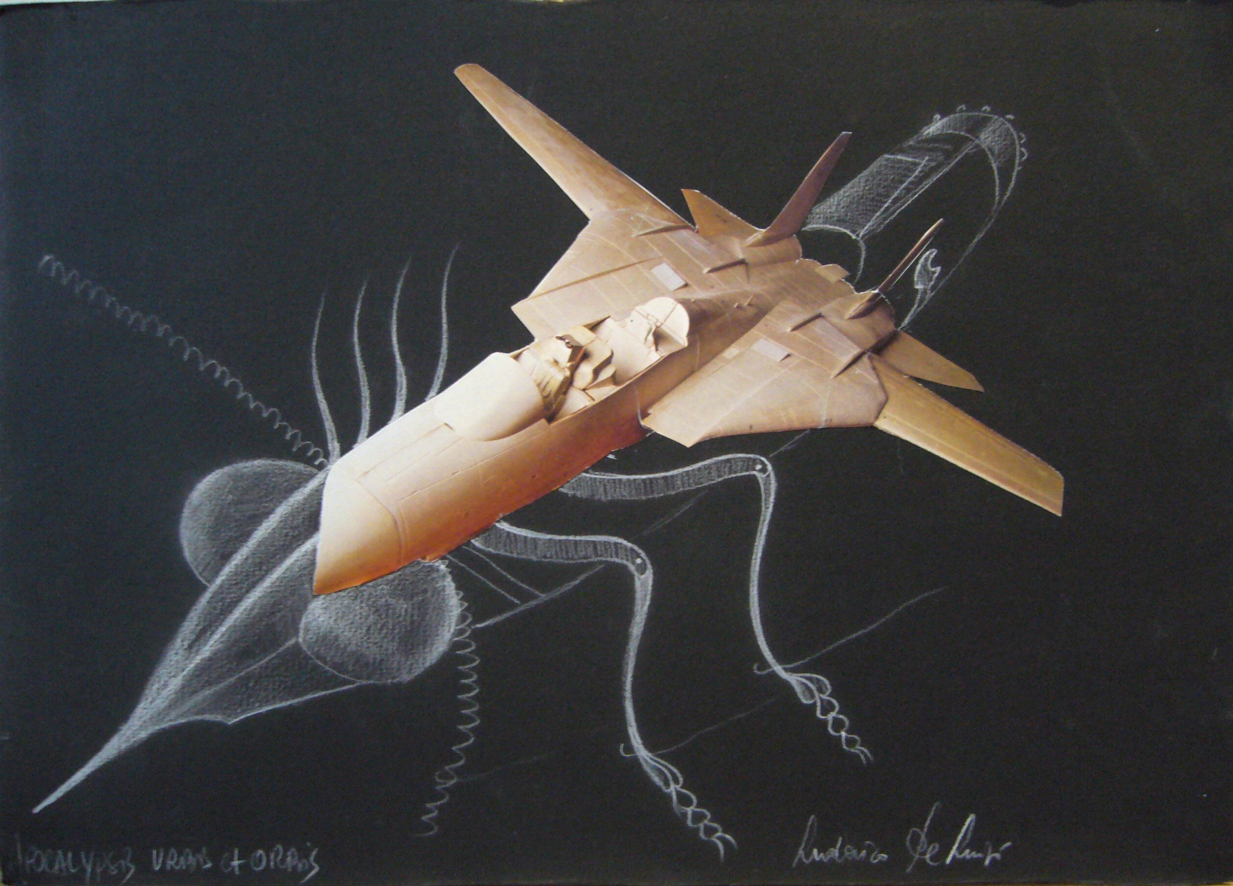 De Luigi Ludovico " Apocalypse13 " pastello e collage su cartone cm 35 x 25, firmato in basso a destra, titolo in basso a sinistra, Prov.COLLEZIONE PRIVATA