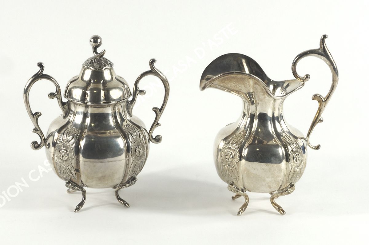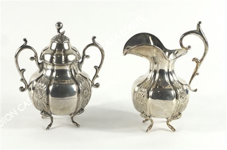 Lotto in argento 925 composto da zuccheriera e lattiera. gr. 1140.