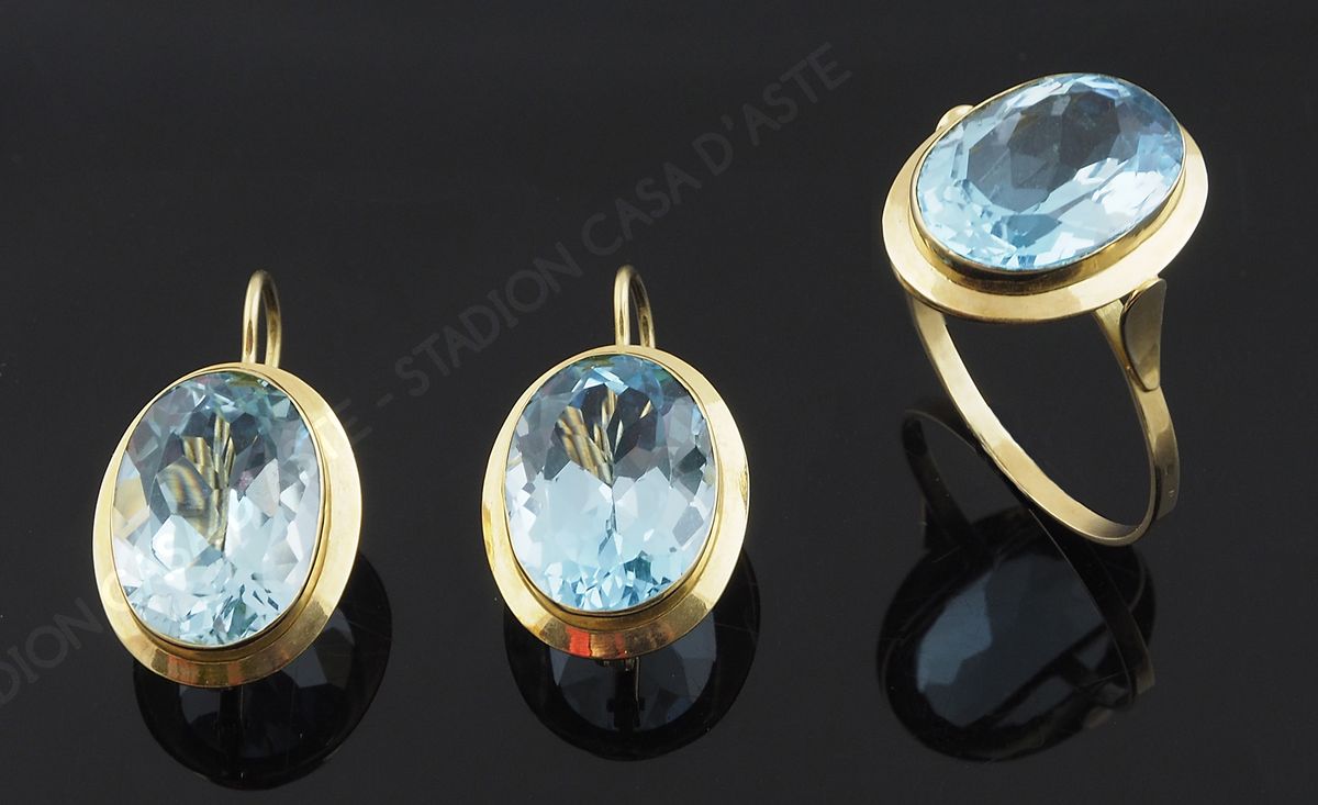 Lotto composto da orecchini a monachella ed anello in oro giallo e topazi...