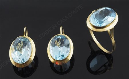 Lotto composto da orecchini a monachella ed anello in oro giallo e topazi ovale. Misura anello 29