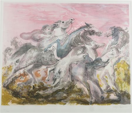 Aligi Sassu Milano 1912-2000 "Cavalli" cm. 56x65 - litografia a colori...