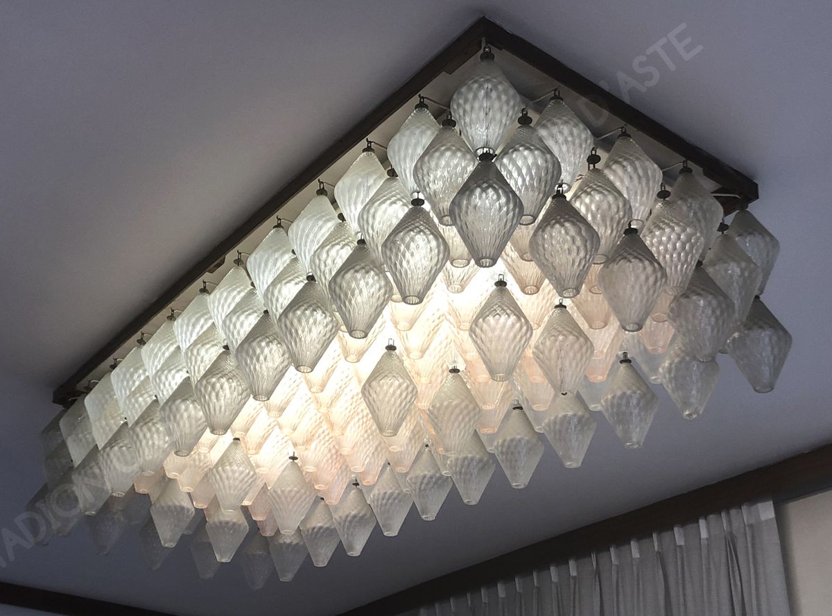 Salviati: grande lampadario rettangolare in vetro di Murano a 2 colori di...
