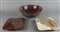 Lotto di tre oggetti in ceramica policroma. Misure diverse.