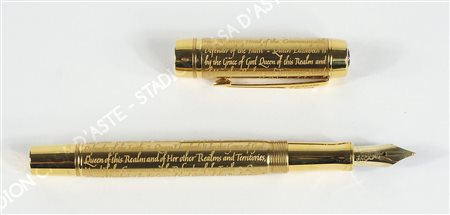 Parker: penna stilografica in oro giallo finemente inciso modello Queen Elizabeth II, pennino in oro giallo. Entro astuccio originale.