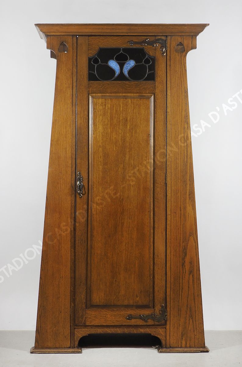 Armadio appendi-abiti con anta in legno e vetri colorati, fianchi mossi con...