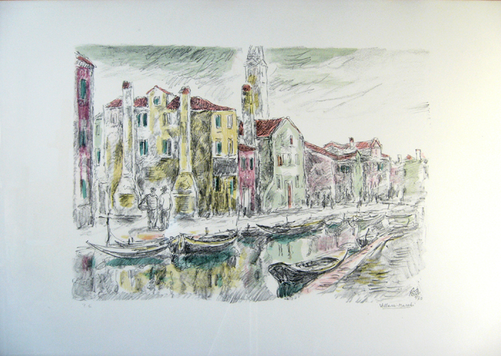 Vellani Marchi Mario " Burano " litografia cm 50 x 70 anno 1970 firmata e...