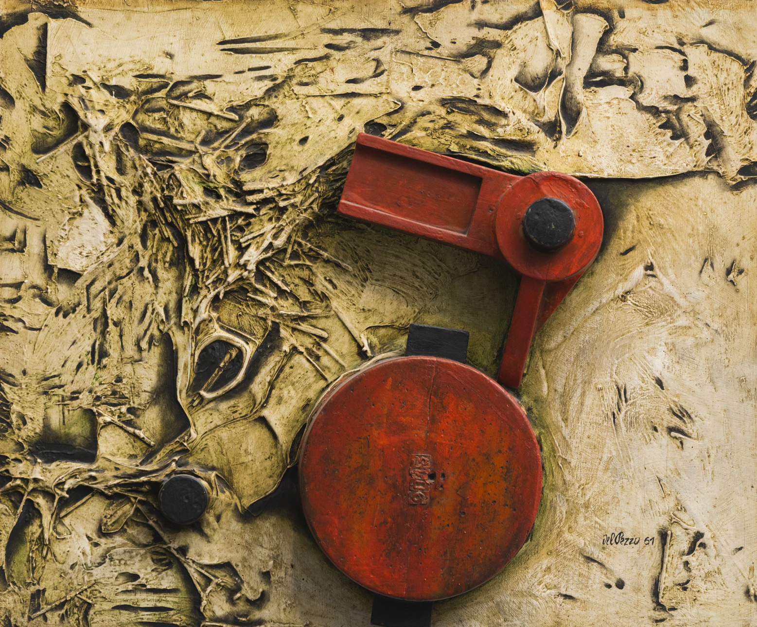Polimaterico su tavola, cm. 53 x 64,5 x 10