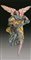 Angelo con capelli ondulati veste verde, manto giallo e svolazzo azzurro....