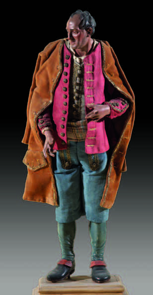 Giovane borghese con bocca semiaperta, indossa una giacca rossa, pantaloni azzurri e una fusciacca in vita. Altezza cm 35 Giuseppe Gori, Napoli, fine del XVIII secolo