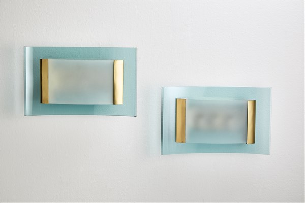 Fontana Arte Coppia di appliques modello "2213". Milano, anni '50. Cristallo mol